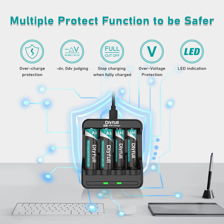 Dlyfull U4-L 4 Bays 1.2V Ni-MH/CD AA AAA Battery Charger